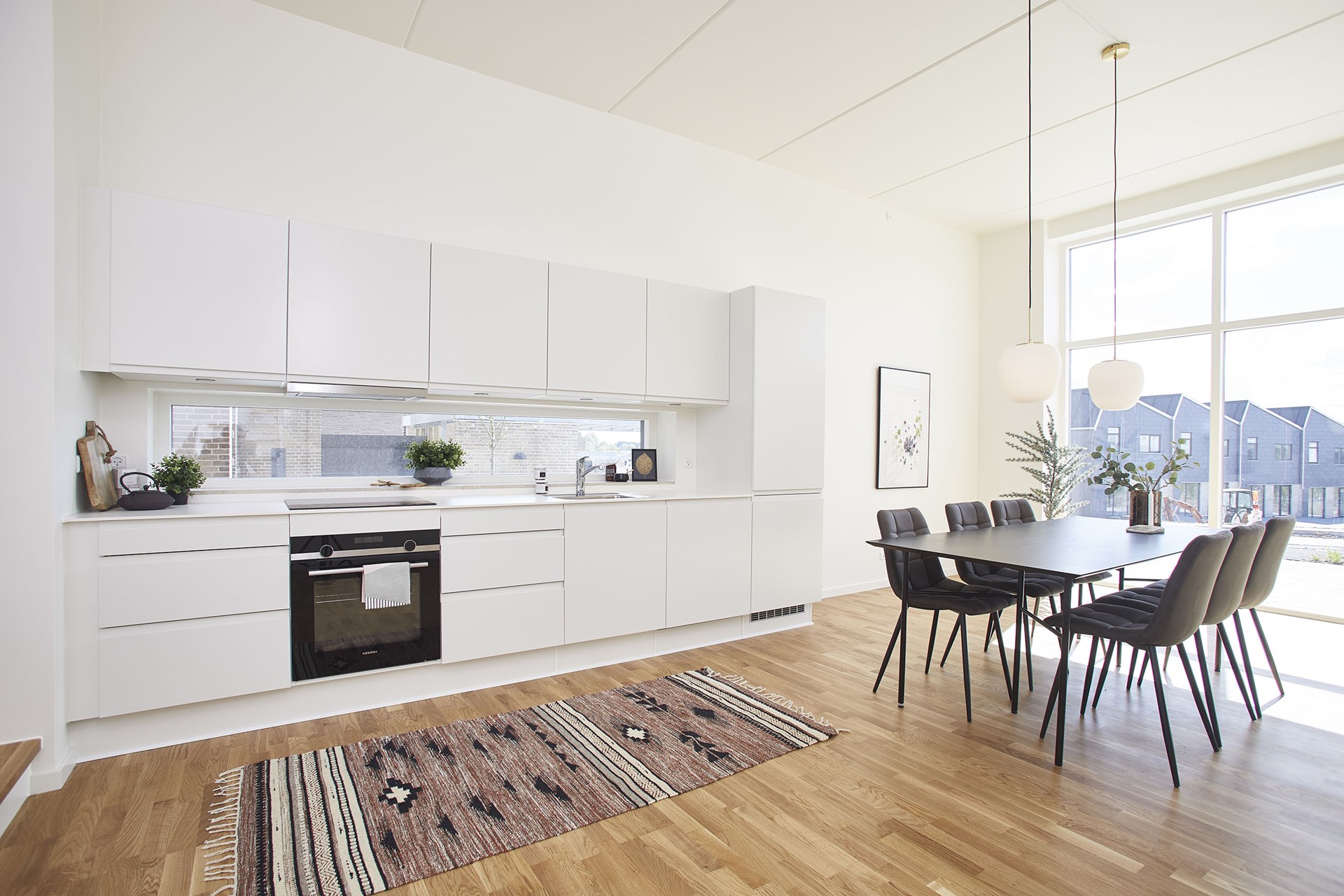 Generelt er boligerne karakteriserede ved et fokus på æstetik såvel som praktik – inspirerende og smukke rum, der ligeledes er rummelige og fungerer – også i en til tider travl hverdag. Derfor finder du også hele 4 gode, store værelser samt et velindrettet badeværelse på førstesalen. I HØIRIISPARKEN får du nemlig rum til at leve, og et hjem, hvor hverdagens stjernestunder er omdrejningspunktet.